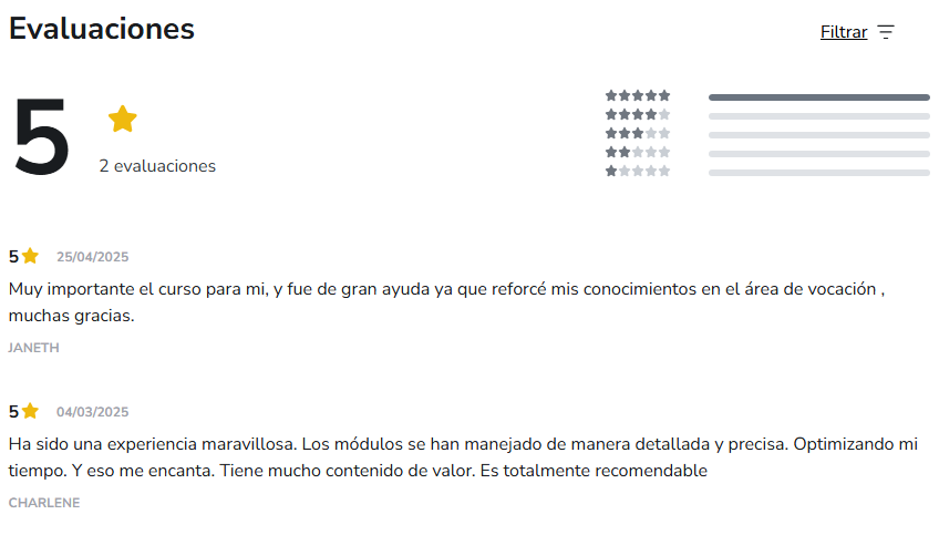 Además, cuentas con acceso 24/7 desde cualquier dispositivo, actualizaciones continuas y garantía de satisfacción de 7 días, lo que asegura una experiencia de aprendizaje segura, accesible y de alta calidad.