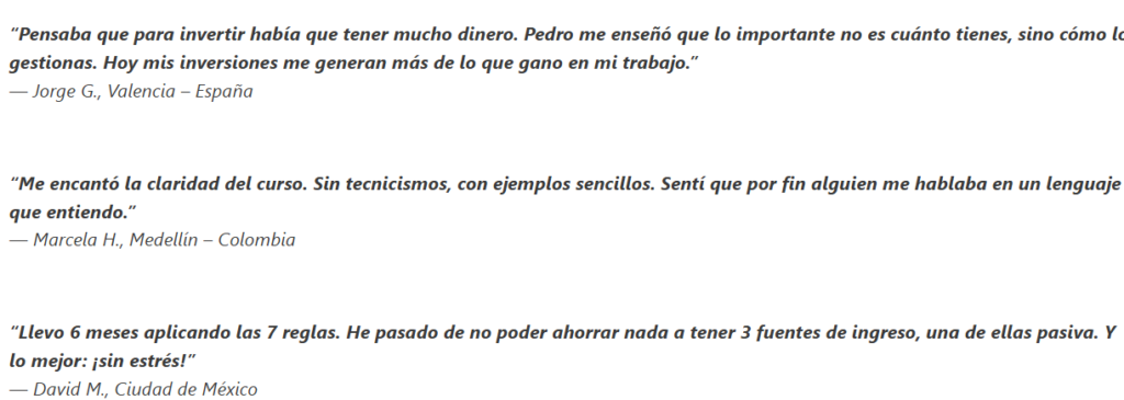 La Certificación en Libertad Financiera de Pedro Castre sí vale la pena, especialmente para quienes buscan un cambio real en su vida financiera. El programa combina contenido práctico, acompañamiento profesional, herramientas descargables y una metodología clara que te permite avanzar paso a paso, incluso si empiezas desde cero. Además, los bonos exclusivos, las plantillas premium y el coaching personalizado agregan un valor enorme que pocas formaciones ofrecen.
