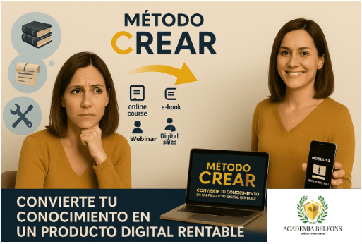 El conocimiento que posees puede abrirte nuevas oportunidades, y el MÉTODO CREAR te enseña cómo hacerlo rentable, paso a paso, con claridad y sin tecnicismos.