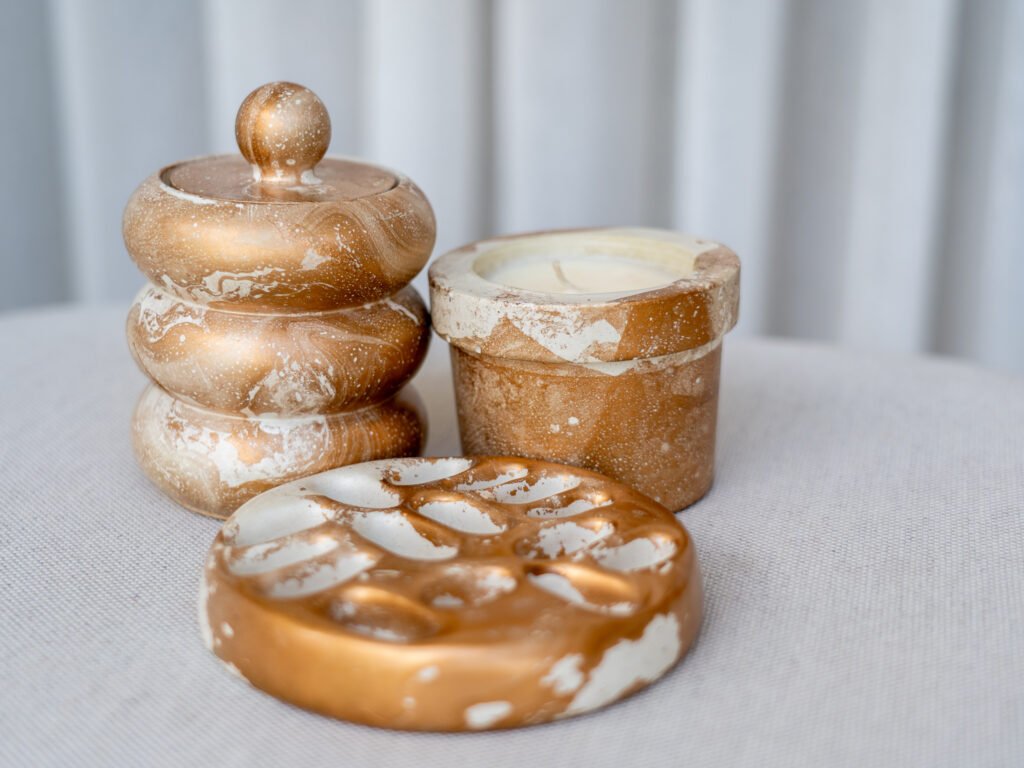 - Aprenderás a crear piezas decorativas únicas en concreto, como bandejas, jarrones, porta velas, topepuertas, joyeros, materas, incensarios, portaespejos y más.