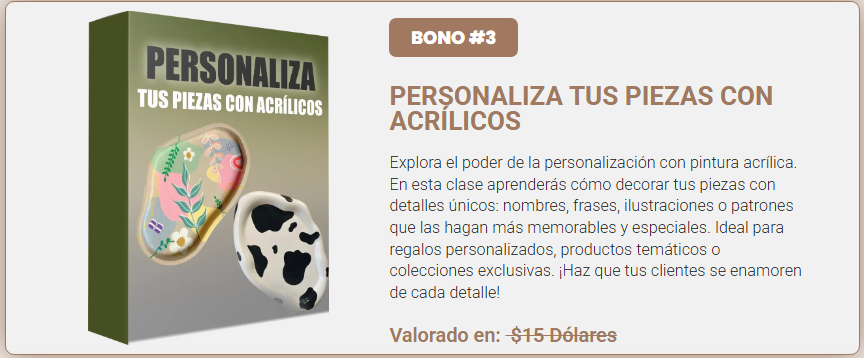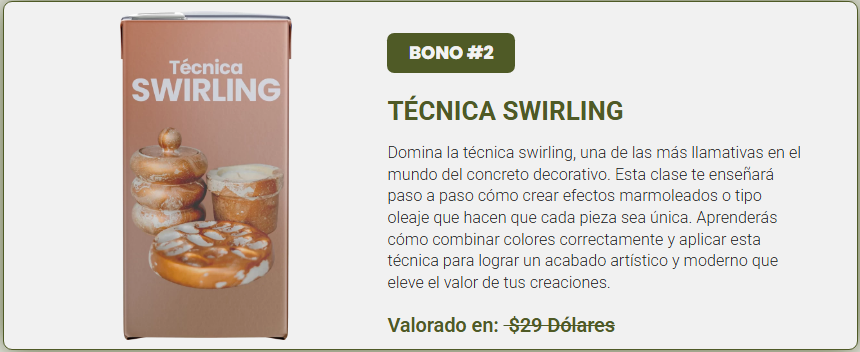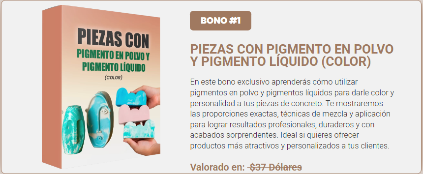 - Garantía de aprendizaje: el curso está diseñado para que cualquier persona, sin experiencia previa, pueda aprender paso a paso la técnica de piezas decorativas en concreto.