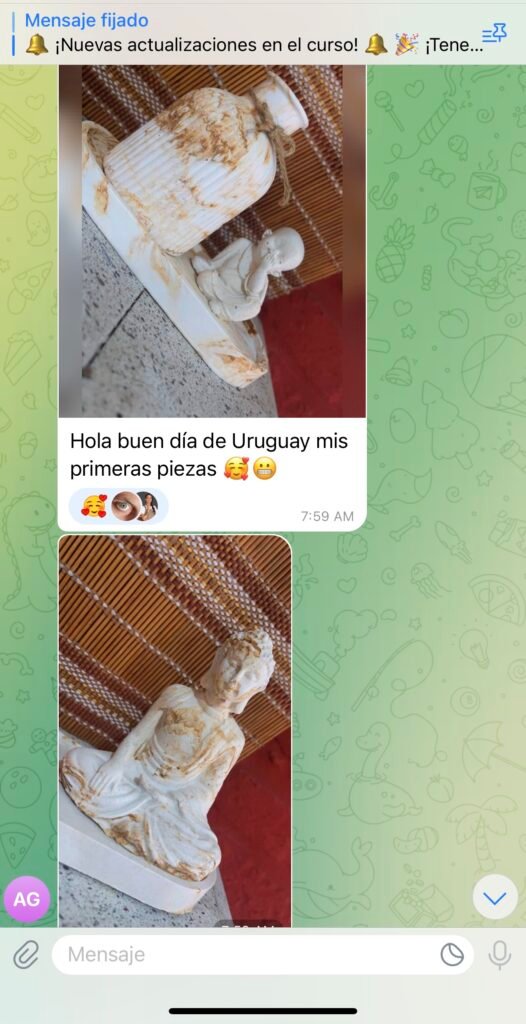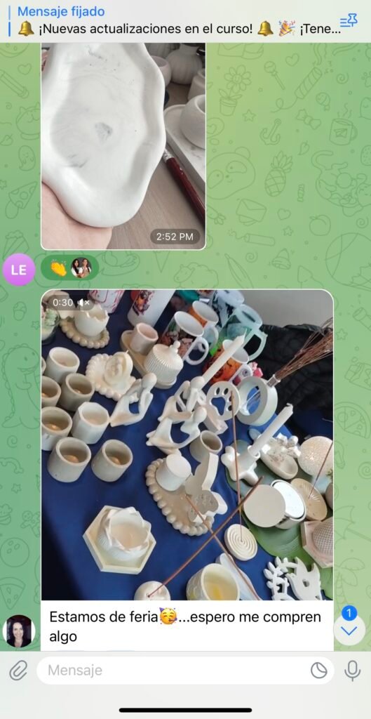 Los comentarios escritos de los estudiantes muestran gratitud y satisfacción por los resultados obtenidos. Algunos mencionan que empezaron sin experiencia y hoy ya venden sus propias piezas decorativas. Otros destacan que el curso no solo les enseñó una técnica, sino que también les abrió la posibilidad de emprender desde casa con un negocio creativo y rentable.